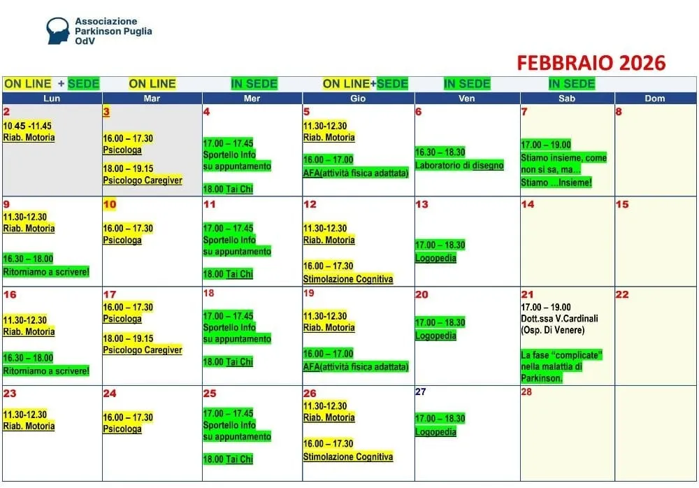 Il programma del mese : FEBBRAIO